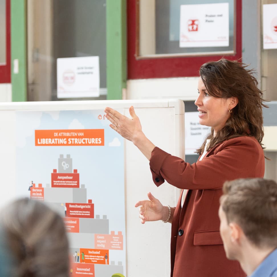 Naast het zelf toepassen van Liberating Structures, delen we deze krachtige werkvormen graag met anderen. We helpen teams en organisaties om Liberating Structures in te zetten en zo hun overleggen en bijeenkomsten te vernieuwen. We bieden dit aan in verschillende vormen: